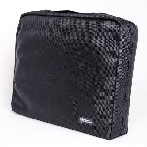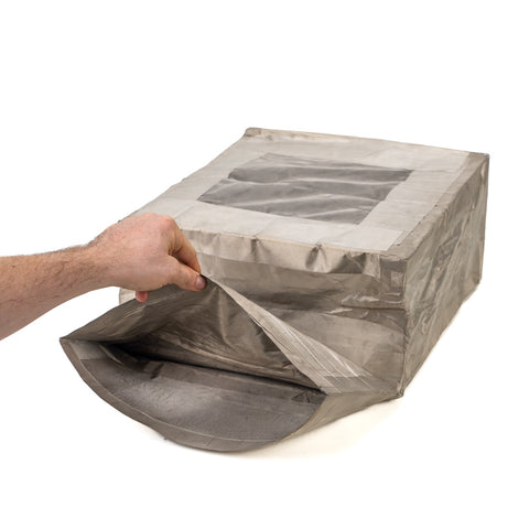 The enclosure is constructed with two layers of high-shielding TitanRF™ Faraday Fabric, tested and certified to MIL STD 188-125 and IEEE 299-2006 standards, and utilizes a patent pending RFMagLink™ magnetic closure system. This closure method ensures long-term durability and easy operation compared to hook-and-loop alternatives, while maintaining complete shielding against WiFi (2.4 & 5GHz), Bluetooth, cellular (including 5G), GPS, RFID, NFC, and signals from low MHz up to 40GHz.