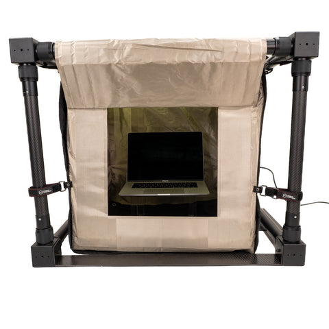 The Mission Darkness™ CYPHERCYLENT™ Faraday Capsule is a compact tabletop enclosure designed for isolating devices that require radio frequency (RF) shielding. Measuring 2' L × 2' W × 2' H, it provides a secure and portable environment for applications such as EMI testing, digital forensics, secure communications, and sensitive device containment. Built with multiple layers of TitanRF™ Faraday Fabric and Tape, the capsule delivers lab-certified shielding performance, blocking WiFi, Bluetooth, cell signals (including 5G), GPS, RFID, NFC, and radio signals from low MHz to 40GHz. The stitch-free design eliminates weak points found in traditional enclosures, ensuring long-term durability and effectiveness.