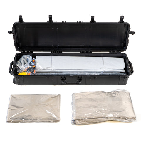 The Mission Darkness™ Exodus EMP Faraday Motorcycle Cover is an extremely large tent-style faraday enclosure specifically designed for shielding motorcycles and small vehicles with electric components from a high-altitude electromagnetic pulse (HEMP/EMP), coronal mass ejection (CME), or related occurrences. The high-shielding properties of the cover direct damaging electromagnetic fields away from highly sensitive electrical components (such as those incorporated into vehicles), thus protecting their working structure. It's constructed with two layers of TitanRF™ Faraday Fabric with no exposed stitching (no holes) and 100% continuous planes. The material has been lab tested and certified "compliant" for MIL-STD-188-125, High-Altitude Electromagnetic Protection for Ground Based C4I Facilities. The results ensure that the material surpasses military shielding requirements to handle natural or man-made EMPs (*see testing details below).