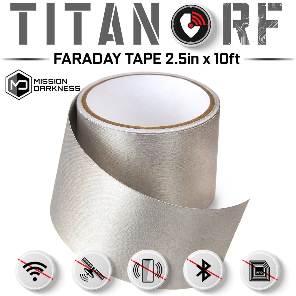 Mission Darkness TitanRF™ Faraday Tape offers the next generation of faraday shielding. It has been laboratory tested and certified to shielding effectiveness standards IEEE 299-2006 (see report details below). The high-shielding conductive adhesive tape is available in multiple lengths and widths. The tape can be easily cut and taped to surfaces for creating DIY faraday cages or RF shielding enclosures, EMF radiation reduction, EMI shielding and deflection, or connecting two sheets of TitanRF Faraday Fabric.